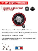 - За млевење црне, беле, зелене или црвене паприке, ружичастих бобица (макс. 15% у мешавини паприке) и семена коријандера.