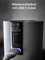 Линијски електрични млин за бибер, у'селецт, карбонски, 15 цм, литијум-јонске батерије - Пеугеот Савеурс
