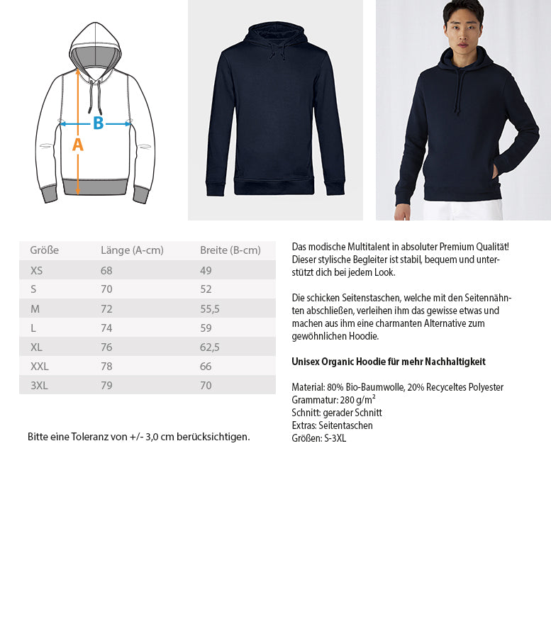 Dieser Unisex Hoodie überzeugt mit seiner soften Qualität und bietet optimalen Tragekomfort bei 80% Baumwolle, 20% Polyester. Nicht nur gut für dich, sondern auch für die Umwelt. Der Organic Hoodie eignet sich außerdem hervorragend als Geschenk für deine Liebsten, egal ob zum Vatertag, Muttertag, Weihnachten oder Geburtstag. Mit diesem einzigartigen Hoodie sticht dein Geschenk ganz besonders heraus. Unisex Organic Hoodie